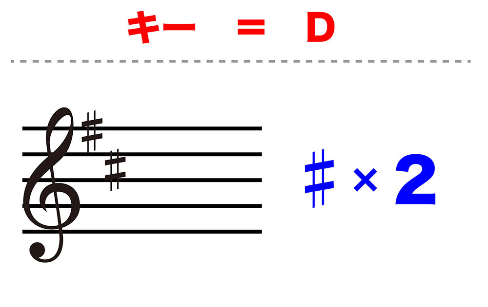 キーがDの場合は、 シャープ(#)が2個です。